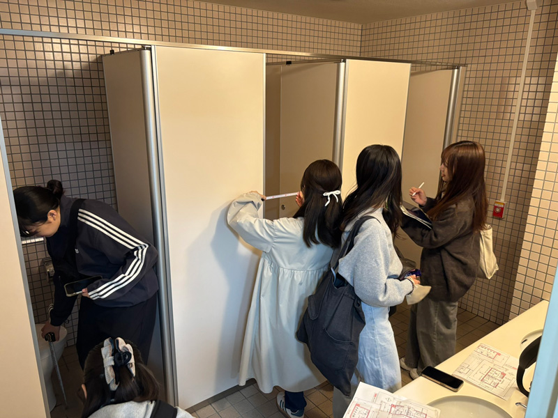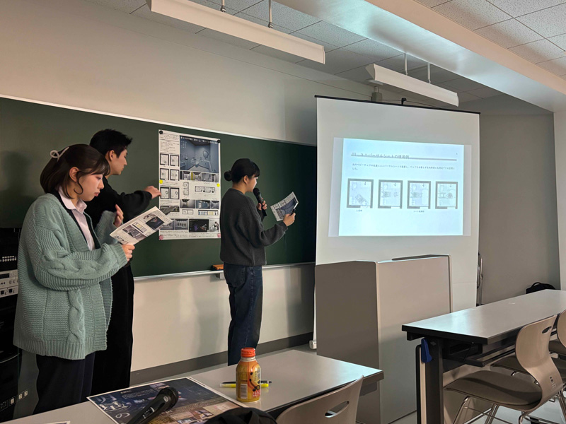 現地での実測調査も行い、様々な建築設備の制約も考慮して現実的な計画案を提案したことは、普段の講義演習では得られない貴重な経験となりました!