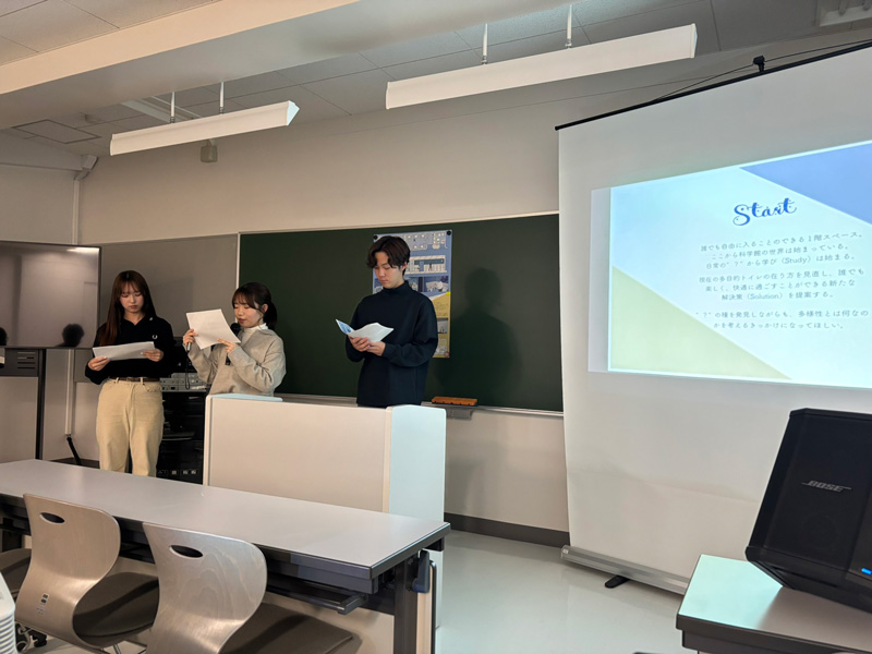11月19日(水)に工学部建築学科建築計画学研究室ゼミ生を中心とした学生が、札幌市青少年科学館トイレのUD改修プランを札幌市担当者に発表しました。