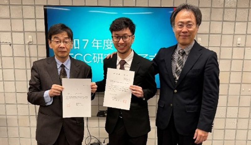 2026年3月13日、パラグアイから研修生として来日し、本学工学部で学んでいた菅原龍人さんの研修修了式が執り行われました。式典には、HIECC(公益社団法人 北海道国際交流・協力総合センター)多文化交流部より小田島道朗様、松居慶子様のご臨席を賜り、植松武是工学部長より菅原さんへ修了証が授与されました。菅原さんは昨年6月の来日以来、電子情報工学科の元木邦俊教授の指導のもと、IoT(モノのインターネット)技術に関する専門的な研修を受けました。